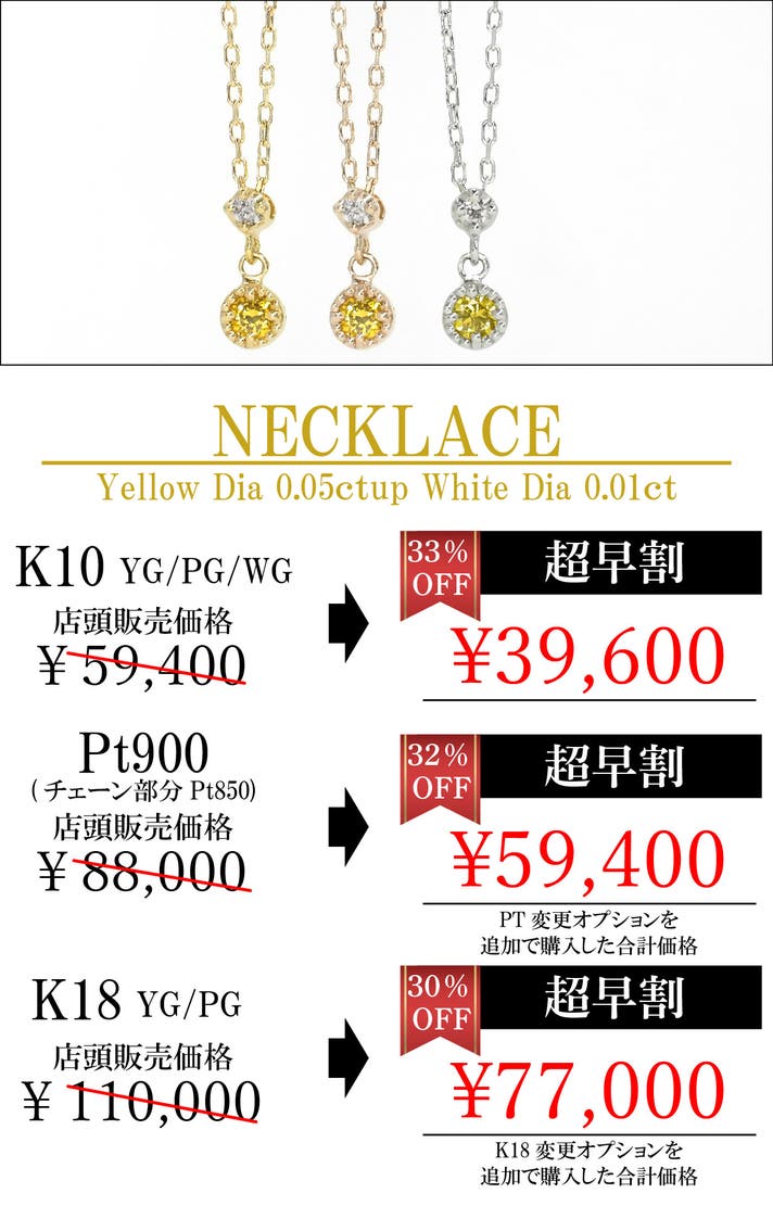 【超早割】K10 イエロー ダイヤモンド ネックレス