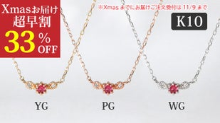 【Xmasお届け超早割】K10 ルベライト ダイヤモンド ネックレス