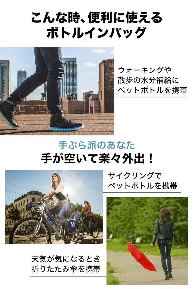 - 意外と揃わなかった12個の機能を凝縮。手ぶらでお出かけ。散歩やショッピング・サイクリングも!