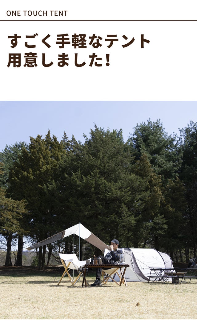 - 3秒で始められる、ワンタッチテント。細かい仕様にもこだわりました。