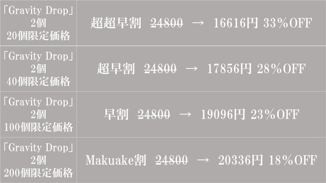 本文中に記載させていただいたスケジュールは、あくまでプロジェクト公開時点の予定です。 応援購入の性質上、配送遅延のおそれがございます。 原則として、配送遅延に伴う応援購入のキャンセルはできませんが、 リターン配送予定月から 6ヶ月 を超えた場合には、希望者に限りキャンセルにて対応させていただきます。 ※並行輸入品が発生する可能性があります。正規以外での個人輸入等は、完全に防ぐことができない場合がございます旨、予めご了承のほどお願いいたします。 ※並行輸入品は正規代理店による製品保証を受けることができません。 また、正規代理店を通じて購入することで、日本国内での流通に必要な各種認証の取得や、関税の適切な処理が担保されます。