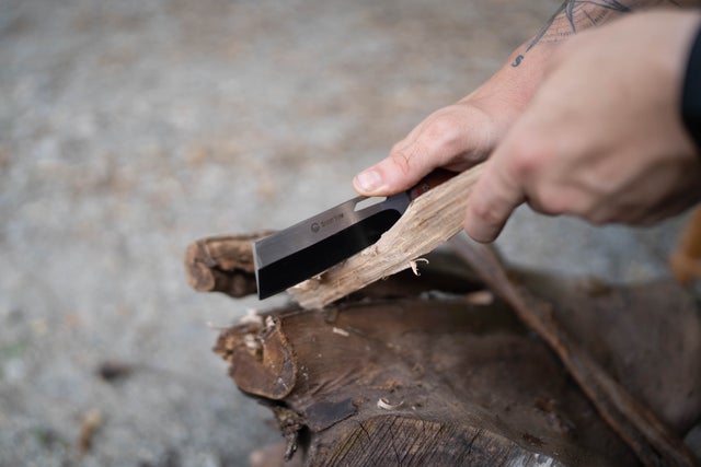 アックスガーディアン2は中央付近からストレートに刃付けされた形状になっています。そのため、薪へ適度に刃が食い込みやすく、フェザースティックの作製が簡単に行なえます。