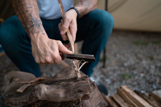 フェザースティックとは細い木をナイフで削り、鳥の羽(feather)のようにすることで焚火の際に着火しやすくさせるというものです。