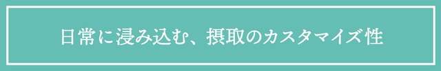そういった補給のカスタマイズで毎日の食のスタイルを崩すことなく栄養効果を高めることができます。
