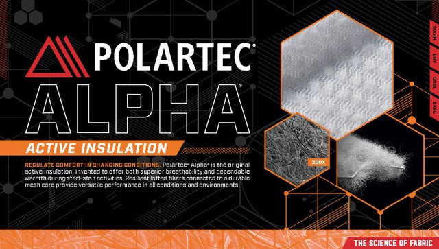 以前より米軍ではダウン素材の代わりに化繊中綿を使用していました。ダウンは濡れるとかさ高が減少し保温性が低下するというデメリットがあり、化繊中綿にしても繊維が外へ噴き出さないように高密度の生地を使用する必要があります。 ゆえに生地の通気性が低く、米軍にとっては致命的なデメリットとなりました。 POLARTEC社は米軍特殊部隊と共同で新しい素材を開発し、『ALPHA』が誕生しました。
