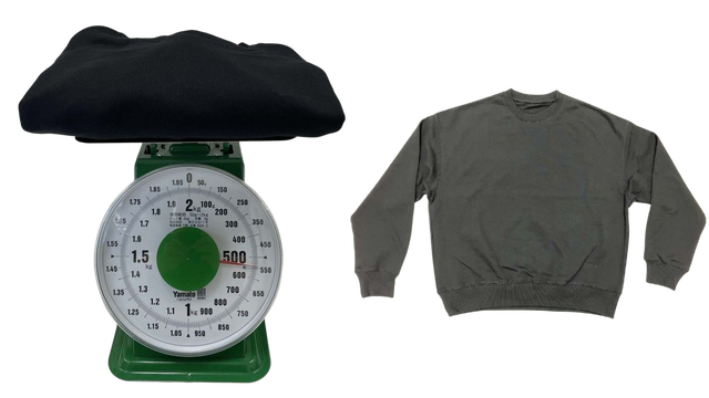 ※袖口と裾はゴムが入っているので、平置きの状態が左の数値、伸ばした状態が右の数値になります。