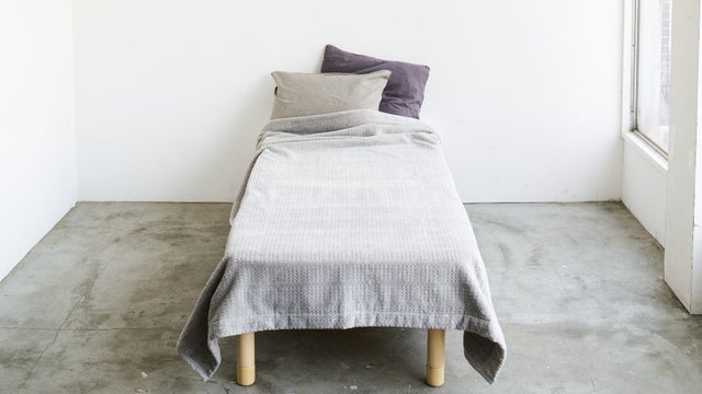 誰が使っても心安らぐ綿毛布だからこそ、LOOM&SPOOLでは懐の深いニュートラルグレーを選択しました。