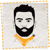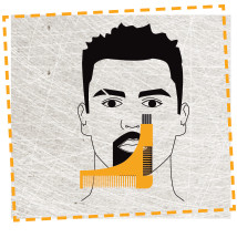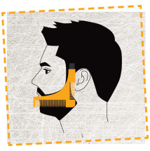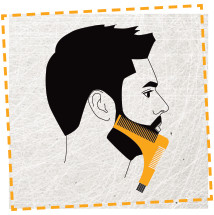 好みの位置にグルーマラングを当て、そのラインに沿って電動シェーバーで剃ります。カミソリを使用する場合、長い歯のくし側を使います。あごから首の好みの位置に長い歯のくし側を当てヒゲを剃っていきます。反対側も同じように剃ります。完璧な曲線シェープのV字形になります。
