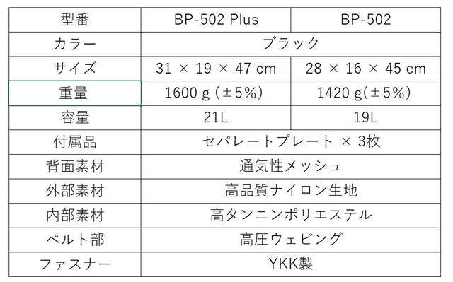 BP-502 Plus と BP-502 は全てのファスナーに YKK製 を採用しています。