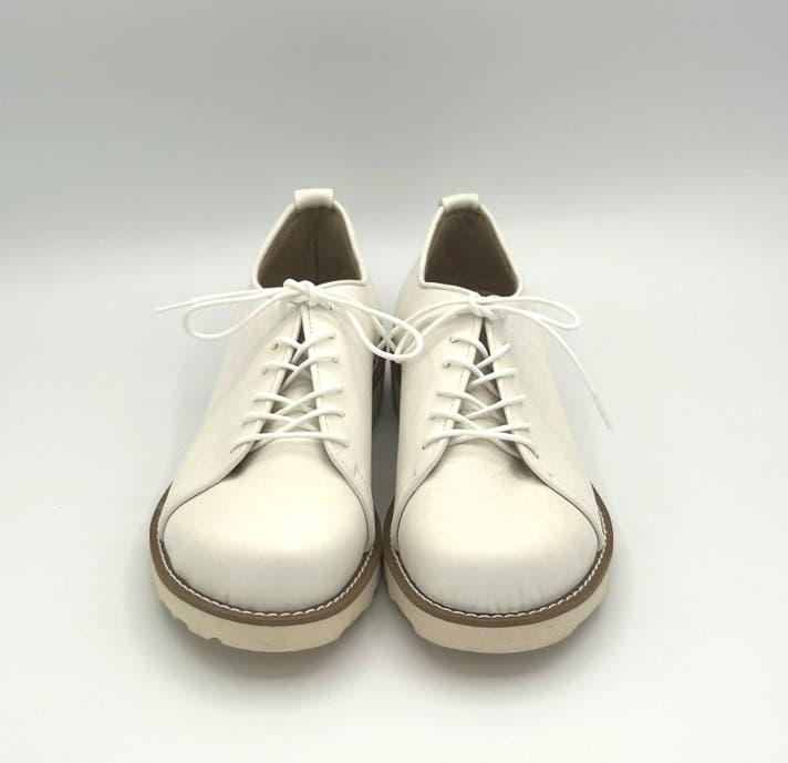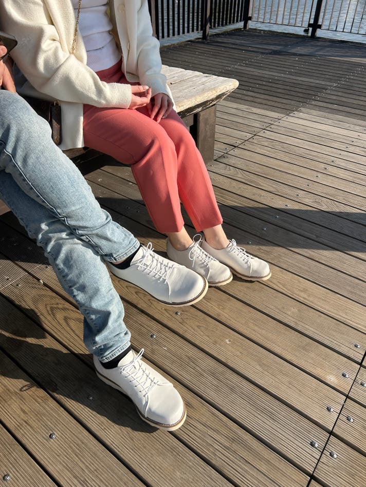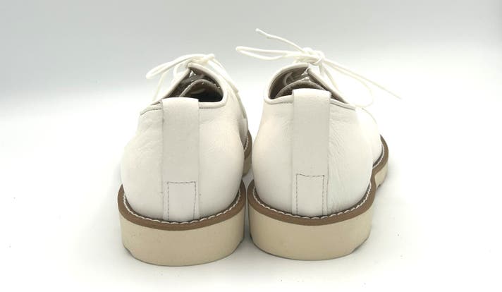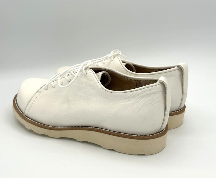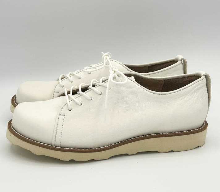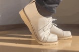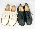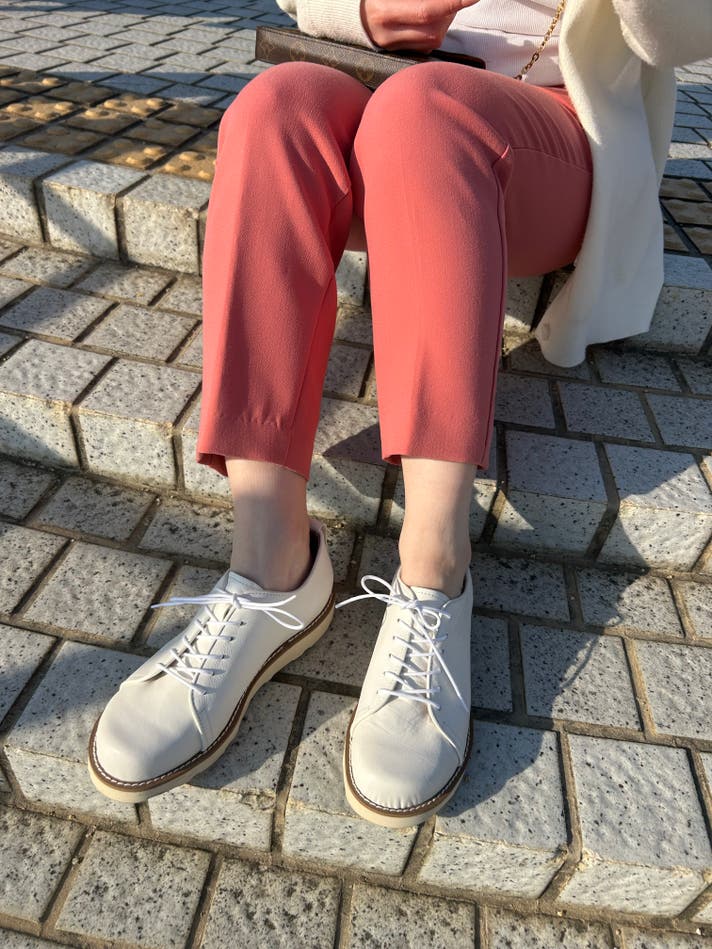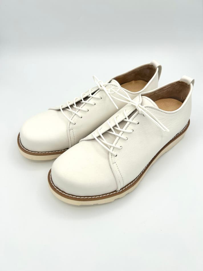 姫路レザー白なめし牛革とVibramで仕立てた、手作りレザースニーカー。