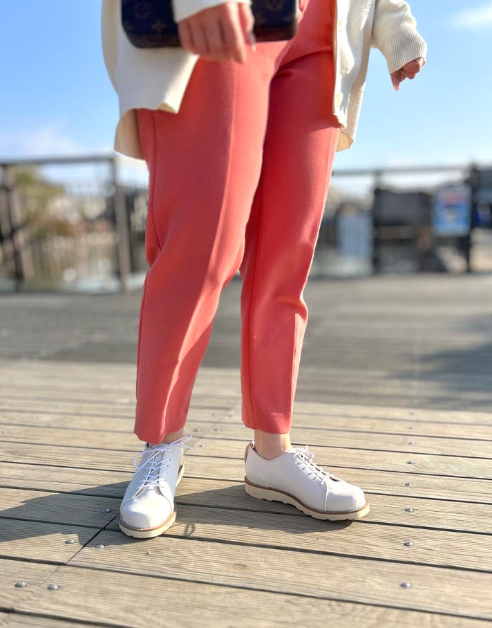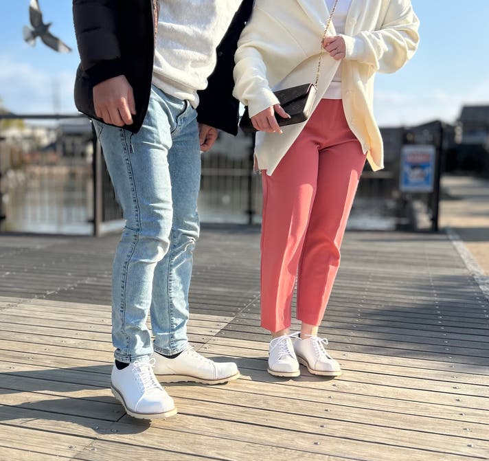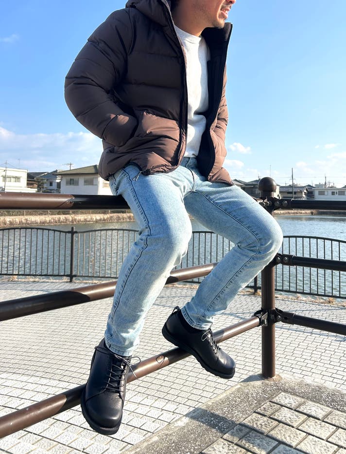 カジュアルな装いでも、足元が締まり、ラフになりすぎません。