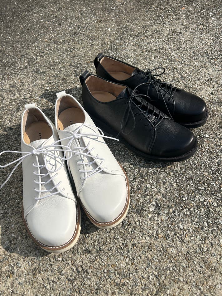 - 見た目以上に固くない姫路レザー白なめし牛革×US Vibramを使用。足馴染み抜群。