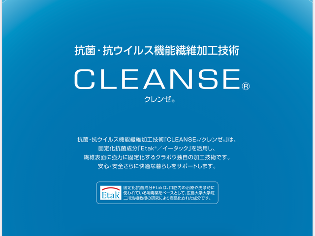 ※「CLEANSE(R)/クレンゼ(R)」はKURABO(倉敷紡績株式会社)の登録商標です。
