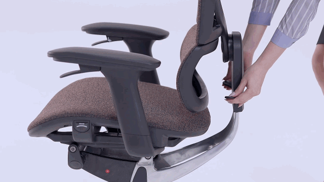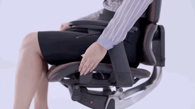 この設計方法をチェアに応用しました。手を座面の下に伸ばすなど、面倒な操作が不要のため、会議や商談の時でもきれいな姿勢で静かにしかも速やかにチェアを好きなポジションに設定可能です。