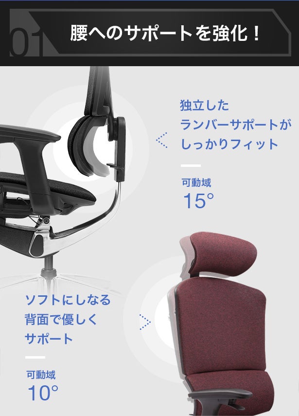 第一弾のオーダーメイドチェアでは首・座面・アームなどの「細かな可動機能」やワンタッチで行える「スマートな操作機能」を高く評価いただきました。