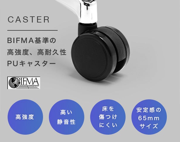 - 継続してご使用いただくと、環境によってキャスターの隙間にホコリがたまる場合がございます。ホコリがたまったまま使用するとチェアの動きが悪くなりますので、ホコリはこまめに取り除いてください。
