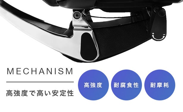 レッグ:アルミ合金を使用し、耐久性、耐腐食性。