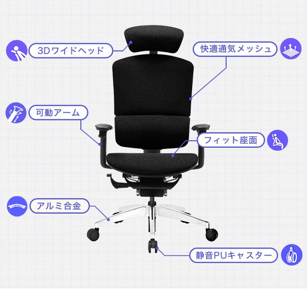 【Makuake割】(プレミアムメッシュ:ブラック)オフィスチェア1点