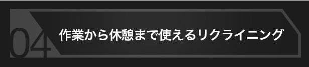ちょっとした息抜きや休憩時に活用したいリクライニングもレバーひとつで背もたれの硬さをお好みにカスタムOK!