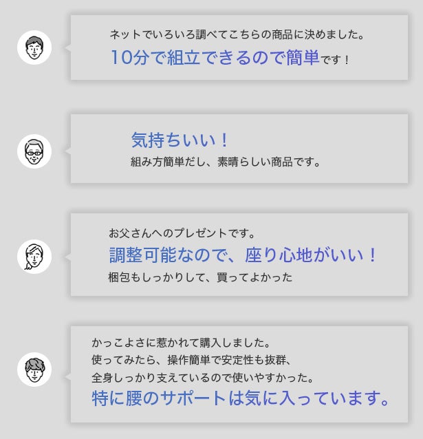 商品の選定に当たっては、商品のユニーク性や品質はもちろんのこと、使いやすさ、快適性、メーカーの技術力、日本の仕様に合うか、デザイン性、などにこだわり尽くし、日本のお客様を満足させるために努力を惜しみません。今までも購入頂いた後も多くの方に大変ご満足頂いております。これからも多くの方に買ってよかった!応援して良かった!と言われるような商品を次々と開発していきます。