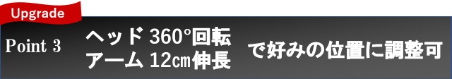 - 変幻自在!自分好みの最適な角度、方向に瞬時に固定でき、さらにアームは最大12㎝伸長可能!