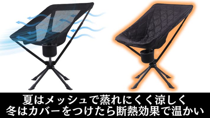 - 【360度回転機能付き】座面がグルグル回ってBBQや焚き火などの作業が捗る!中でも外でも大活躍