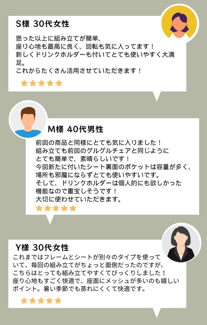 ポータブルアウトドアチェア「GuruGuruChair」の試作品をお試しいただき、高評価をいただきました。(抜粋、一部修正)