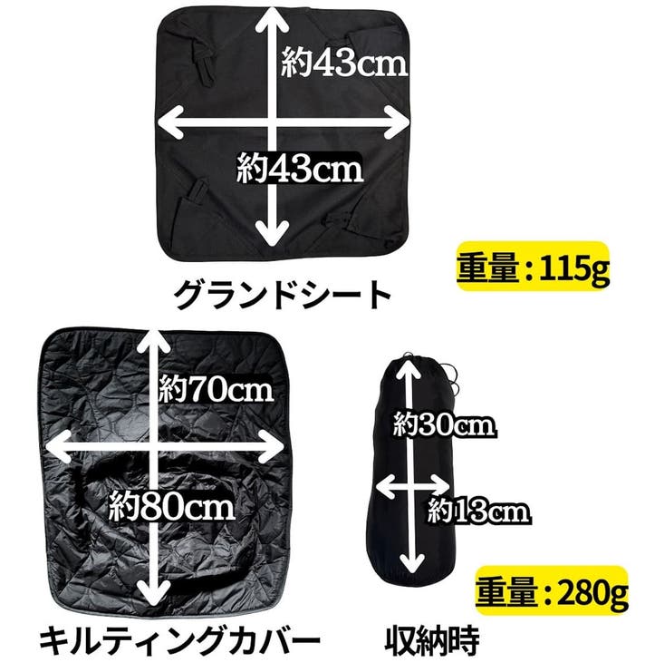 椅子本体、専用ケース、専用グランドシートのセットです。(キルティングカバーは付属しません。)