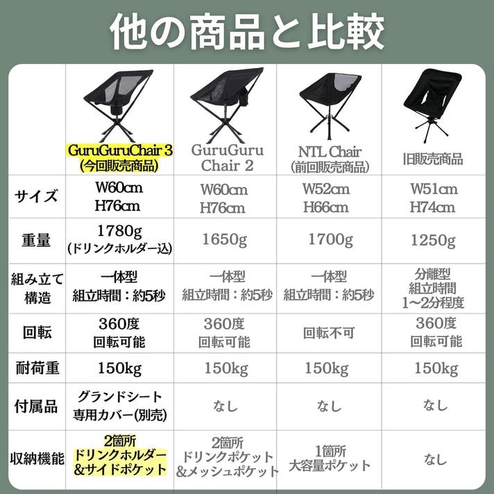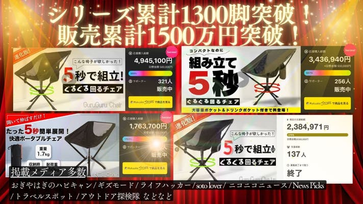 今回ご紹介する「GuruGuru Chair 3」は、累計1000万円以上を売り上げた過去のモデルをさらに進化させた、次世代型のポータブルチェアです。