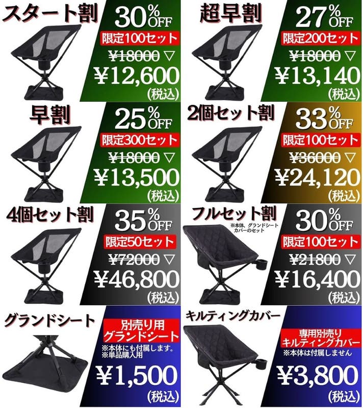 【4個セット割25200円OFF】アウトドアチェア4脚+グランドシート4枚