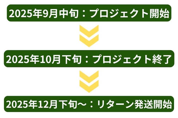このプロジェクトはAll in型です。目標金額の達成に関わらず、プロジェクト終了日の2025年10月30日までに支払いを完了した時点で購入が成立します。
