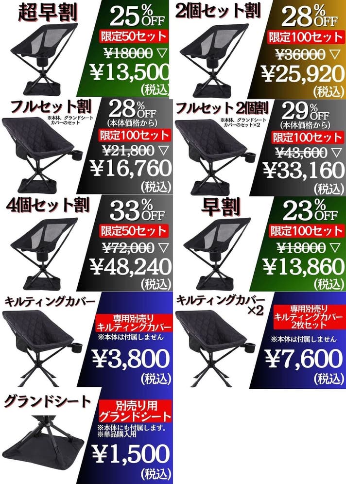 【4個セット割23760円OFF】アウトドアチェア4脚+グランドシート4枚