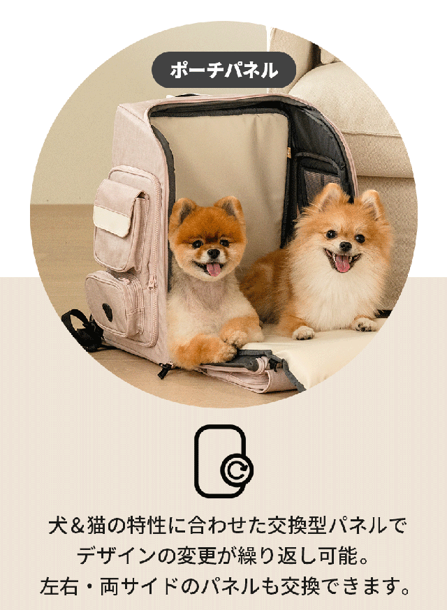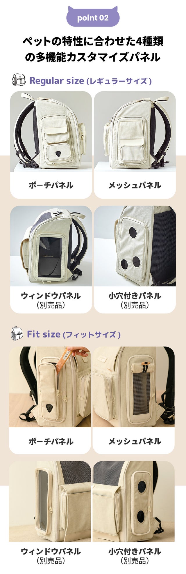 - 簡単に交換できる4種類のサイドパネル!(パウチ・メッシュ窓・透明ウィンドウ・小穴付きパウチ)