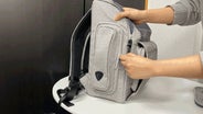 ※背面ポケットのマジックテープを剥がしてスーツケースのキャリーハンドルに固定