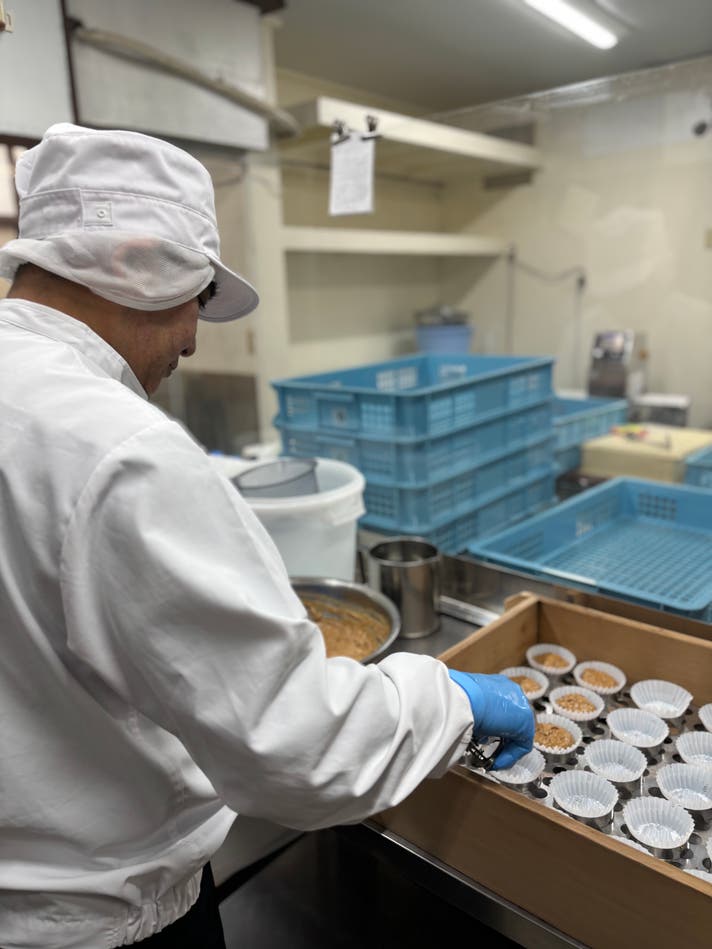 不揃いの黒糖の粒を混ぜることで、チョコチップのように黒糖の塊があちこちに入り、味の奥行きを出しています。