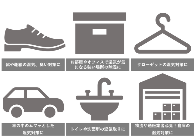 湿気が気になる場所へポンと置いておくだけで湿気を強力除去!