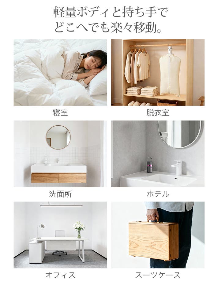 スイッチを入れたら30分後に自動停止。60~150分のタイマーも搭載。就寝前にセットすれば、朝にそのまま着られる状態で完了。“待つ時間”を睡眠に変えられるから、忙しい旅程や平日の時短に最適です。