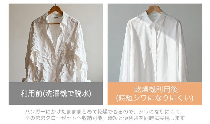 - カバー内で熱風循環→衣類全体をムラなく乾燥。最短15分で翌朝の着替えが整います
