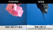 GYAKUSOLなら地面との接地面は最小限に抑え、地面と傘布に空間が生まれるので