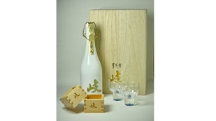 - 岐阜産の特注桐箱に、光るぐい飲み、手作り升を各2個をセットしたスペシャルギフトパッケージ