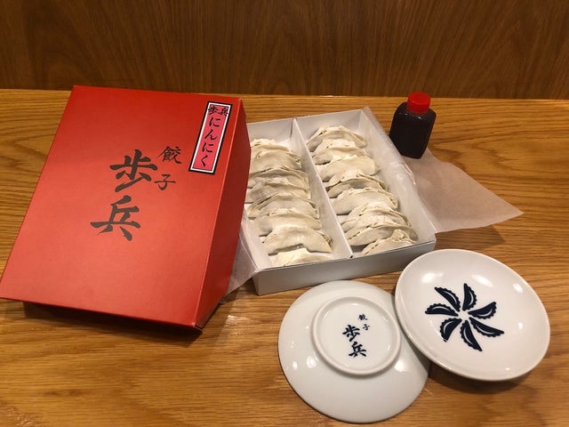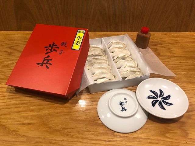 オリジナルデザイン小皿ペアセットと歩兵ぎょうざ1箱(にんにく)