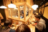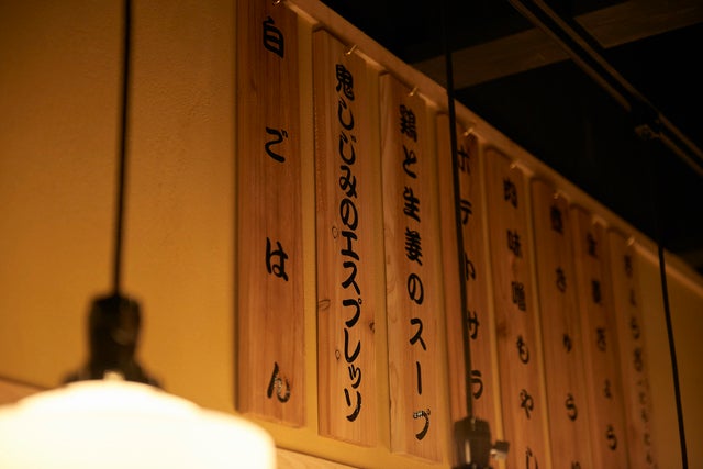 「餃子歩兵 銀座店」のコンセプトは、“行きつけにしたい、こなれた小京都”。祇園本店と同じく目印は赤い暖簾と格子の引き戸で、店内は白木を基調とした昔から存在していたかのような馴染みのある雰囲気です。