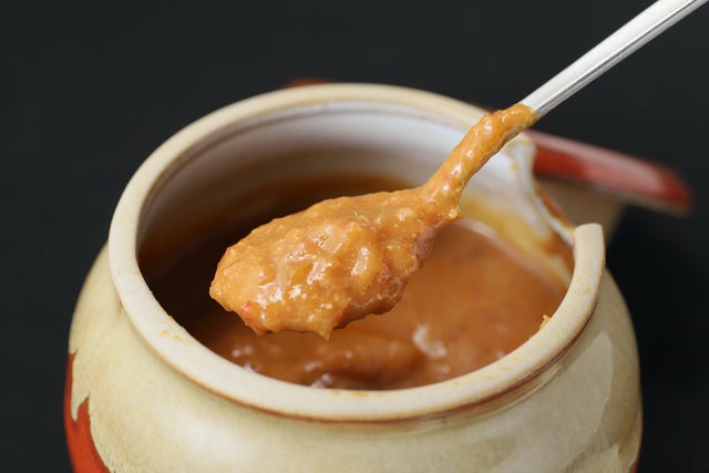 <餃子たれ>生姜餃子には味噌だれ、にらにんにく餃子には酢醤油がセットになります。