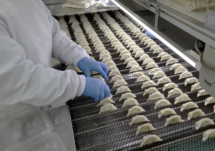 私たち『ぎょうざほんぽpao』の工場は、瀬戸内の西側に位置します。私たちの工場では、毎日約230,000個の餃子を包んでいます。製造された餃子は、その日のうちに全国のラーメン店、スーパーやご家庭へ発送されます。製造から発送までを一貫して自社工場で行い、製造後『即・急速冷凍→梱包→発送』するので、鮮度が違います。