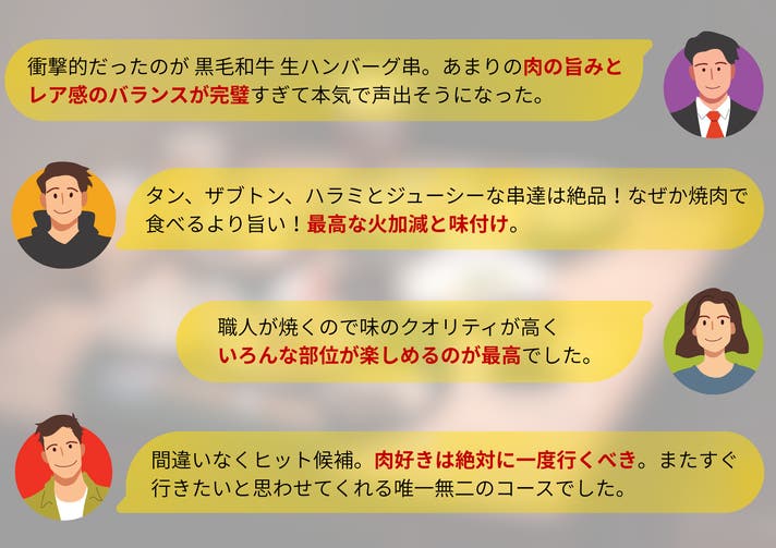 - 香り・旨味・食感のすべてにこだわった高級焼肉の味を 串“一本”で味わう贅沢