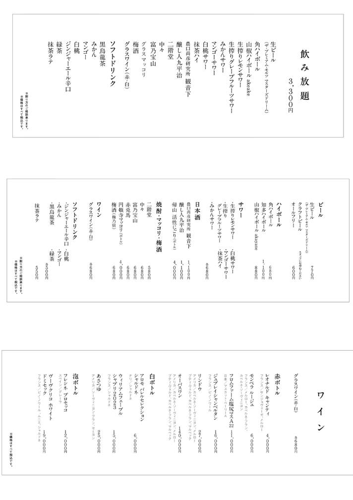 ※こちらのコースには、ドリンクが含まれております。
