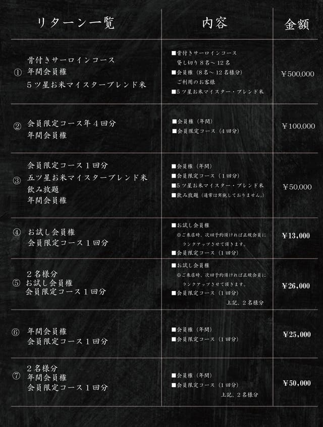 - 【一般会員募集は今だけ!】ご紹介かお連れ様のみがなれる会員。マクアケ限定で会員権+極上コース