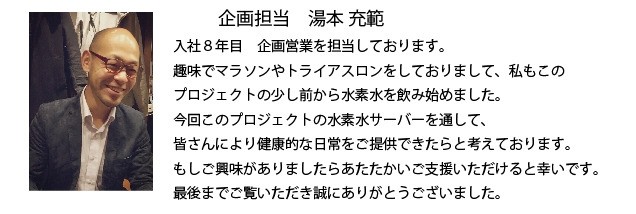 お求めやすい価格の高濃度携帯水素水サーバーを世に出したい!!