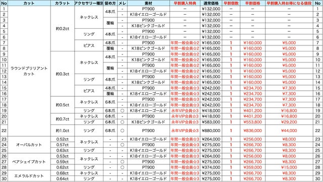 ※0.2ctのネックレス、及びリングの早割価格での購入プランはございません。