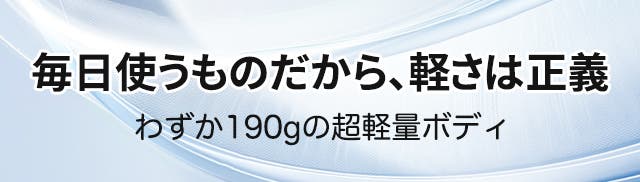 - 本体約190gの超軽量ボディで、毎日の使用はもちろん外出時の持ち運びも快適です。